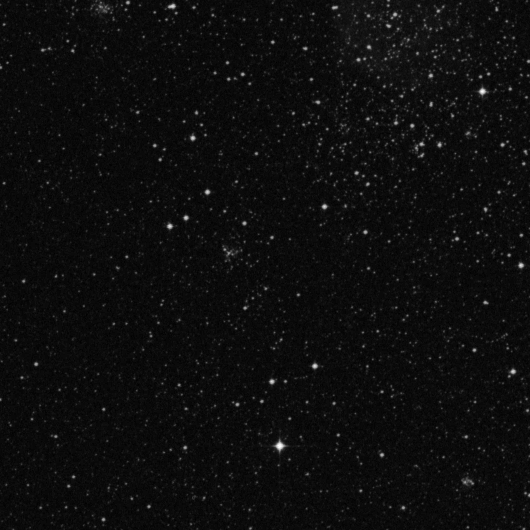 Is a very small cluster about 30" across and appearing comet like at high magnification. The cluster has a fairly high surface brightness, with a bright nucleus. A star of 13