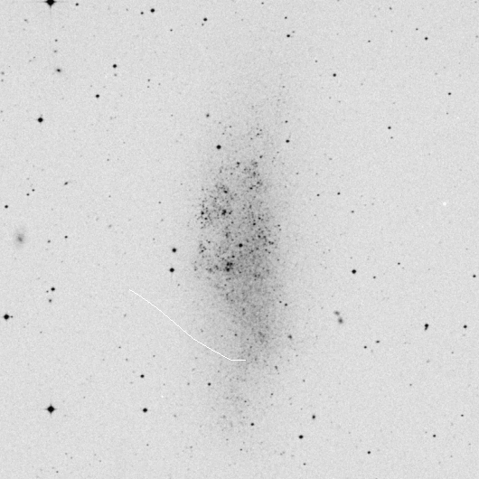 WLM is a big elongated galaxy about 3 times longer than it's width. No central condensation was seen. The globular cluster was not seen.